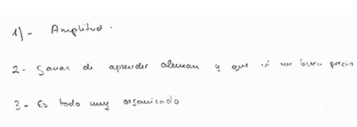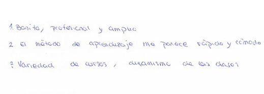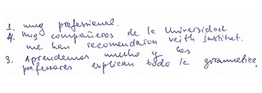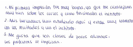 Me gustaría destacar que a pesar de que en el examen se incluye un vocabulario más complejo que en la media del resto, gracias al estudio continuo del vocabulario durante los cursos, es posible superarlo. La redacción es un detalle sobresaliente; 250 palabras en temas de diversa índole. Se trata de alta capacitación con nivel B1.